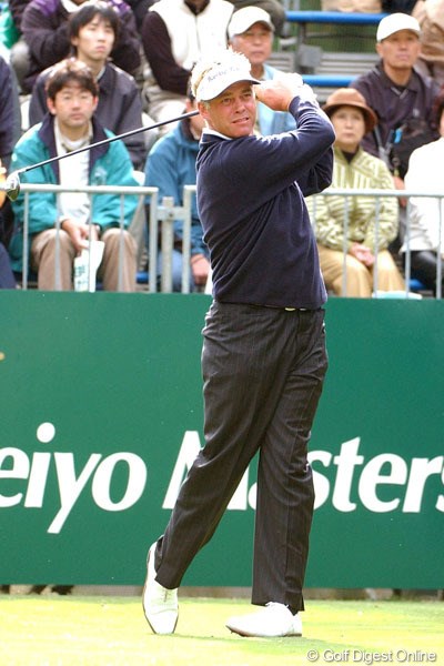 初日首位に立ったのは、ここ数試合好調を維持している川岸良兼と、招待選手の1人ダレン・クラーク(北アイルランド)の2人。10番ホールからスタートしたクラークは、いきなり3連続バーディで飛び出した。一時は7アンダーまでスコアを伸ばしたが、8番ホールで唯一のボギーを叩き6アンダーフィニッシュ。川岸も3番パー5でイーグルを奪うなど順調にスコアを伸ばしている。