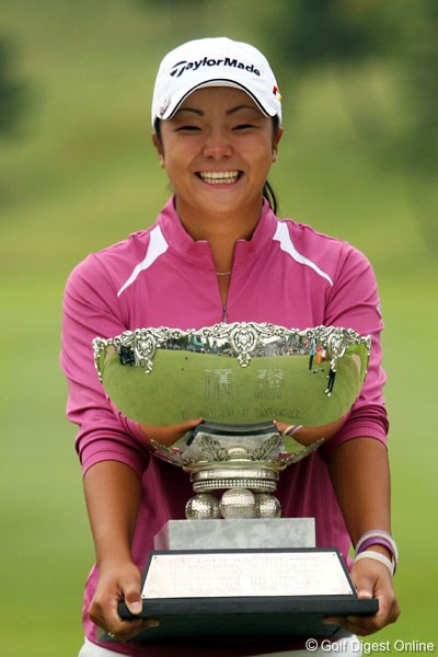 しかし、そんな心理状態とは裏腹に、三塚は序盤から落ち着いたプレイを見せる。2番、8番と2つのパー5できっちりとバーディ奪取。9番ではティショットを右の崖下に落としボギーとしたが、そこから再びパープレイを続けた。後半、ドライバーが曲がりだした三塚は、平均230~240ヤードという3Wでティショットを打つ作戦に切り替えると、バックナインもパープレイで切り抜け、2位の日下部智子を1打振り切って嬉しいツアー初優勝を飾った。