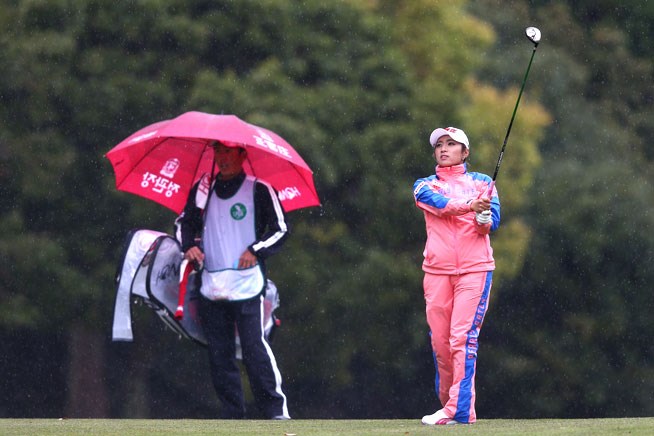 悪天候の中、イ・ボミが7アンダー単独首位に浮上