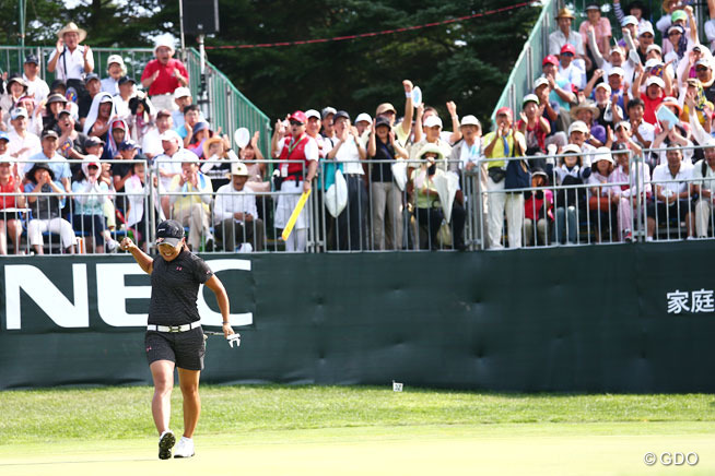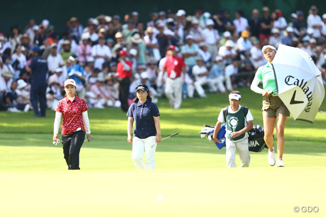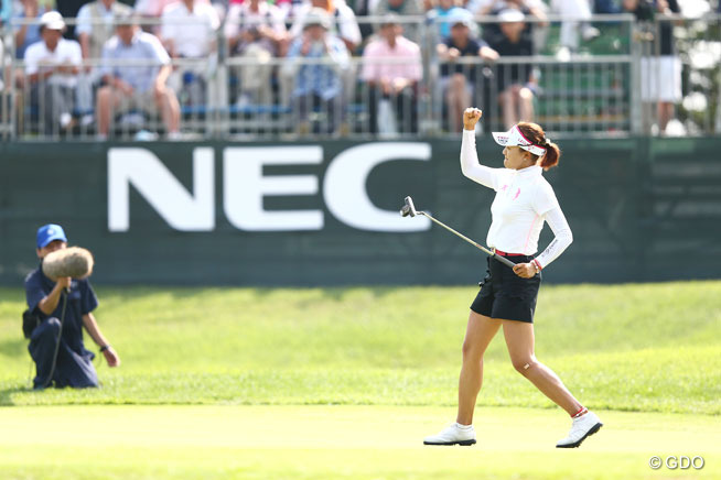 プレーオフ2ホール目、長いバーディパットを外したリ・エスドに対し、成田美寿々は、ピン上6メートルにつけていた。「下りの速いスライスライン。とりあえず、距離を合わせてパーを獲ろうと思った」というバーディ..