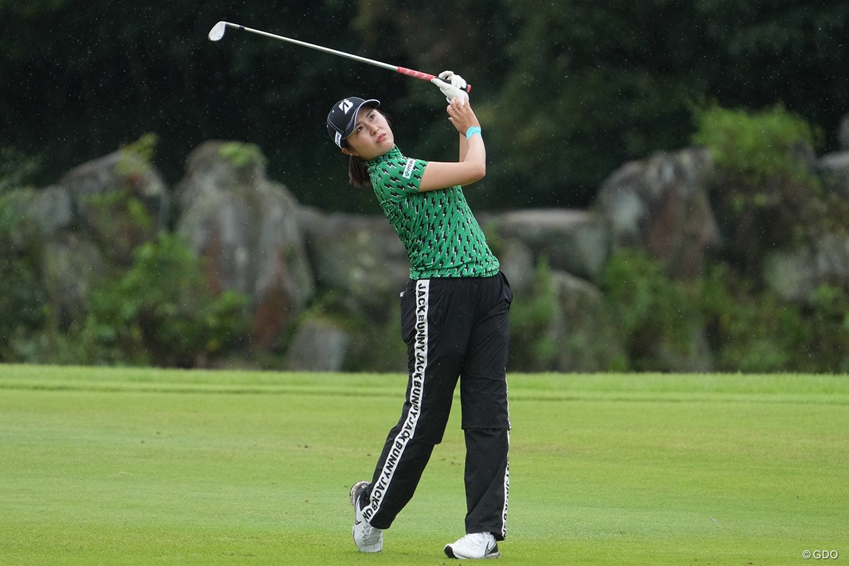 ディフェンディングチャンピオンの古江彩佳は「74」。勝みなみ、堀琴音、アマチュアの梶谷翼(滝川第二高3年)、尾関彩美悠(作陽高3年)らと同じ48位で初日を終えた。