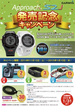 今年5月に発売したのが、ゴルフ専用GPS『S2J』。時計型の距離計測器で、ガーミン製と最大特徴である高い精度がウリだ。その『S2J』の購入者を対象として、11月15日~2015年1月15日まで、様々なアイテムが当たるキャンペーンが開催される。