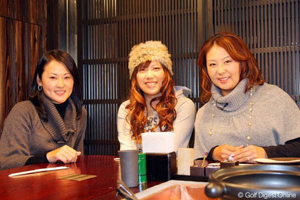 都内の居酒屋で行われた女子プロ対談では、ツアー中の試合から離れた話や、オフの過ごし方。もちろん女性ならではのファッションの話や、唯一の既婚者でもある北田に、佐伯、綾田が羨望の眼差しで話を聞く場面も。