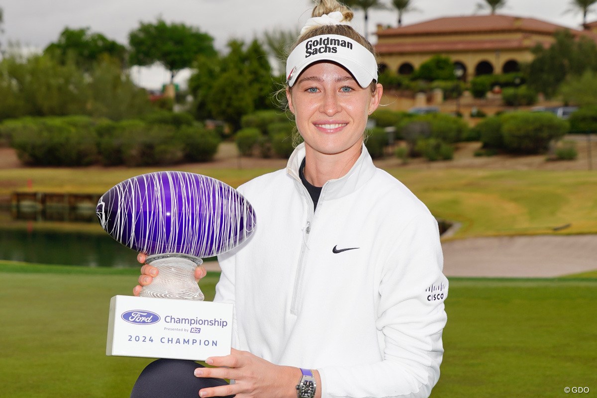 先週に世界ランキング1位へ返り咲いたネリー・コルダが6位から7バーディ「65」で回り、通算20アンダーで2打差を逆転。1月「ドライブオン選手権」、前週「ファーヒルズ朴セリ選手権」に続く出場3試合連続優勝を決めた。ツアー通算11勝目。