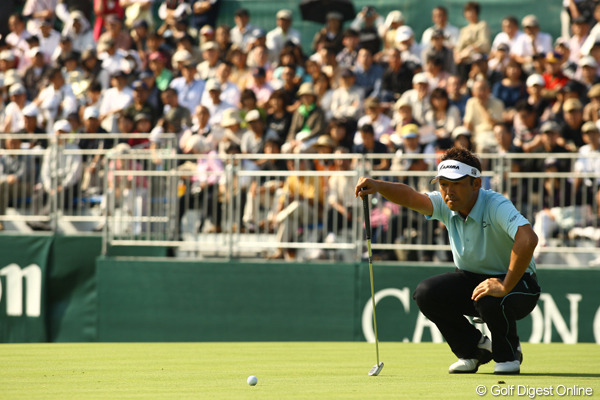 2009/10/10国内男子 久保谷健一 前日同様にパットが冴え単独首位に! 神奈川県にある戸塚カントリー倶楽部 西コースで開催されている、国内男子ツアー第16戦「キヤノンオープン」の3日目。この日は第2ラウンドが行われ、2位スタートの久保谷健一が11アンダーで単独首位に立っ…