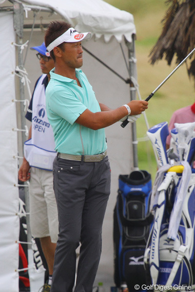 2011/10/06国内男子 7位発進の久保谷健一は、相変わらずのボヤキ… 模様。4打差の4位タイグループには6バーディ、2ボギーの「68」で回った久保谷健一が入ってきた。 出だしから2ホール目、11番(パー3)で5メートルを決めてバーディを先行させた久保谷は、13番(パー5