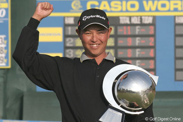 2005/11/27国内男子 谷口徹が金鍾徳との戦いを制し今季初優勝を飾る! 高知県にあるKochi黒潮カントリークラブで行なわれている、国内男子ツアー第28戦「カシオワールドオープンゴルフトーナメント」の最終日。谷口徹が通算11アンダーまでスコアを伸ばし、追い上げてきた韓国…