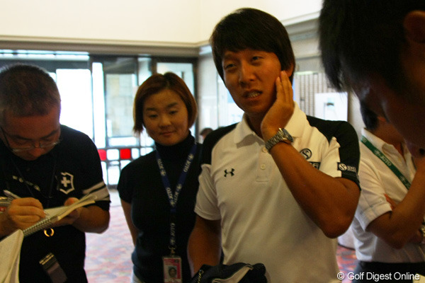 2010/11/14国内男子 キム・キョンテは10位タイ「もう1回、気持ちが締まります」 「三井住友VISA太平洋マスターズ」最終日、現在賞金ランキングトップを走るキム・キョンテは、6バーディ2ボギーの「68」。通算7アンダーとスコアを伸ばし10位タイで4日間の戦いを終えたが、稼いだ賞金